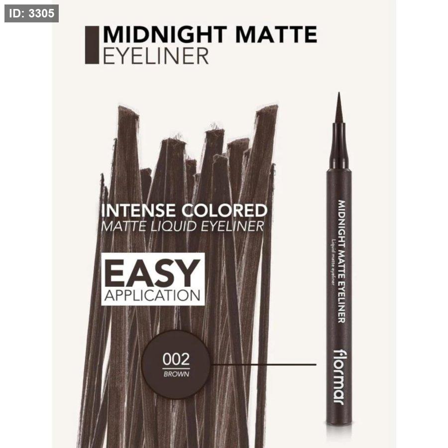 اكتشفي سحر العيون الجريئة مع فلورمار ميدنايت مات آيلاينر، تركيبة فريدة بلمسة مات مخملية تمنحك لونًا بنياً كثيفًا بتمريرة واحدة فقط، لتحديد أنيق وثابت يدوم طوال اليوم دون تلطخ أو تلاشي.