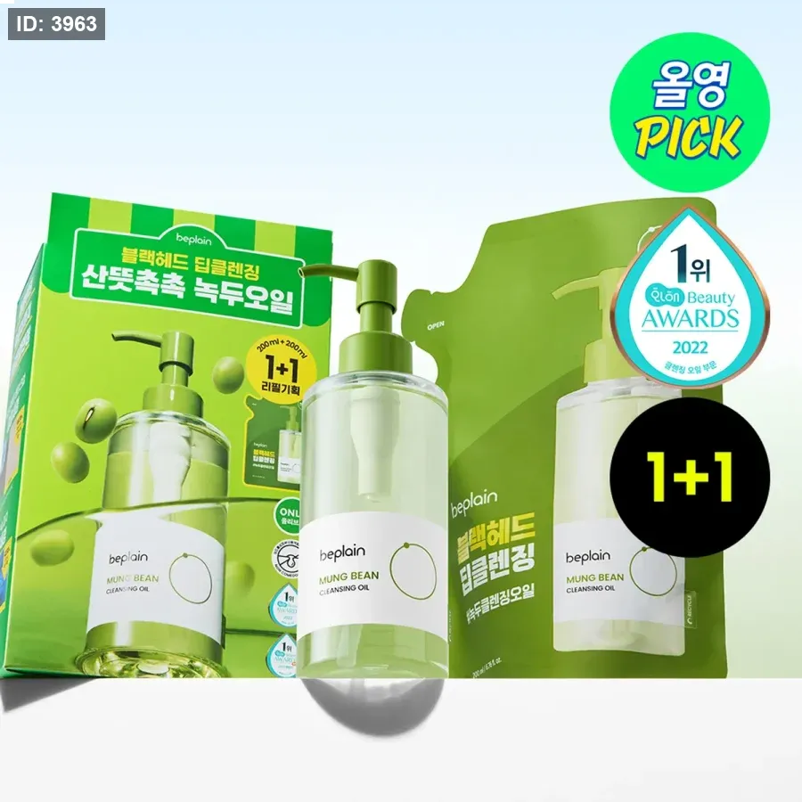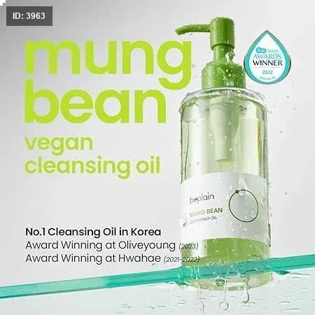 Beplain Mung Bean Cleansing Oil زيت تنظيف فاخر حائز على جوائز، يعمل بفعالية على إزالة المكياج المقاوم للماء، الشوائب، والزيوت الزائدة من البشرة.