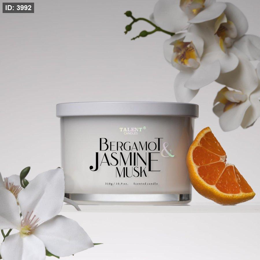 انغمسي في أجواء راقية مع شمعة Talent Candles برائحة البرغموت والياسمين والمسك. تجمع بين نفحات البرغموت المنعشة، لمسة الياسمين الزهرية، وقاعدة المسك الدافئة لخلق أجواء أنيقة ومريحة.