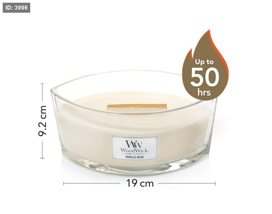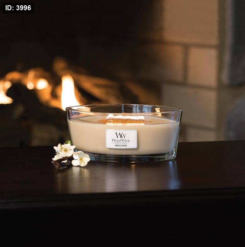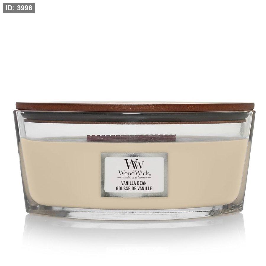 استمتع بأجواء دافئة ومريحة مع WoodWick Vanilla Bean Candle.